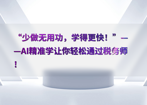 备考税务师,时间紧任务重,AI精准学可以助你事半功倍。1、它会根据你的历史学习数据和阶段性考核结果,推荐个性化学习清单;2、同时结合历年高频考点,生成高效学习清单和薄弱知识点清单;3、通过智能测试和学习报告,全方位追踪学习效果,让你的备考更加科学。