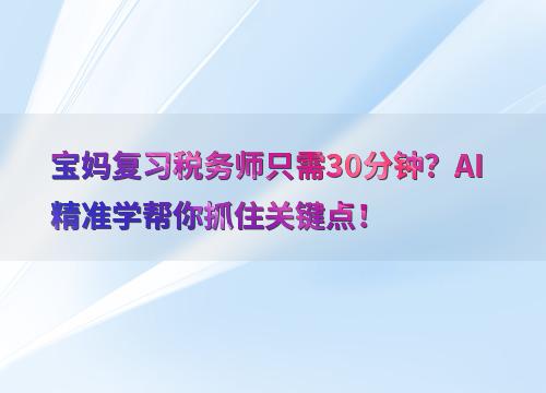 AI精准学提供双套智学体系,助力宝妈高效备考。1、精准个性化智学体系,根据个人基础和阶段性考核结果,推荐个性化学习清单;2、高频考点智学体系,结合历年高频考点和阶段学习结果,推荐高效学习清单及薄弱知识点清单。双套体系相辅相成,让学习更科学。 答:是的,AI精准学适合不同基础和时间安排的备考人群,尤其适合宝妈等时间有限的考生。 答:AI精准学通过动态调整学习任务和精准推题,显著提升学习效率。 答:AI精准学功能已包含在正保会计网校课程中,无需额外付费。 说明:因考试政策、内容不断变化与调整,正保会计网校提供的以上信息仅供参考,如有异议,请考生以官方部门公布的内容为准!宝妈复习税务师只需30分钟?AI精准学帮你抓住关键点!