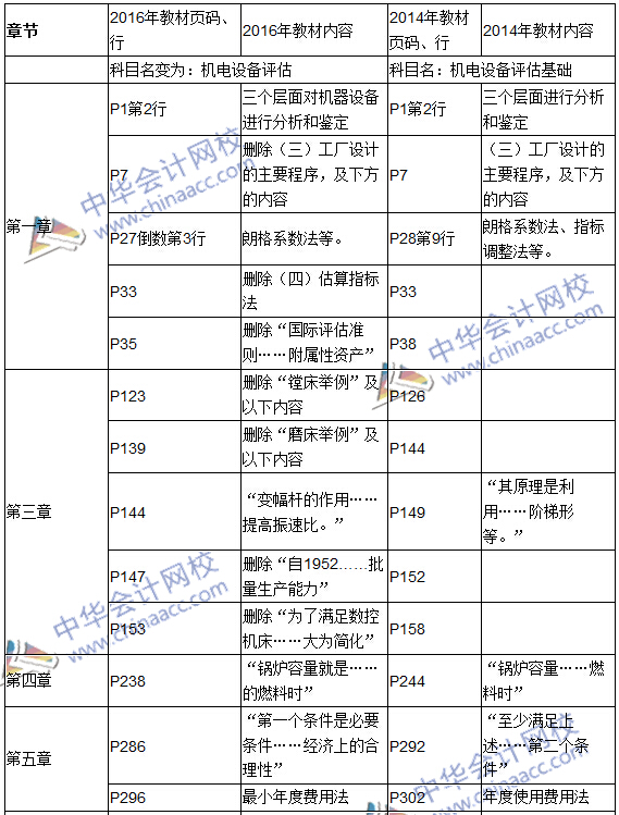 2016《机电设备评估》教材变化不大,主要是删除了一些举例和方法,没有实质性的变化。