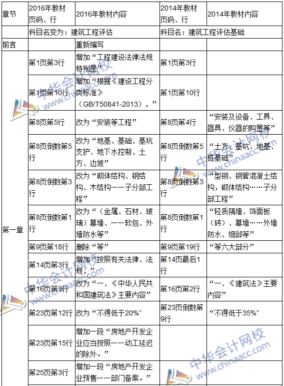 2016年资产评估师考试《建筑工程评估》教材变化对比