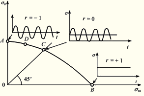 循环特征r等于-1;最大应力和最小应力大小相等,符号相反;平均应力等于0;应力幅等于最大应力。 |