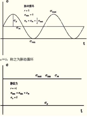 循环特征r等于0;应力幅等于平均应力,都等于二分之一最大应力;最小应力等于0。 |