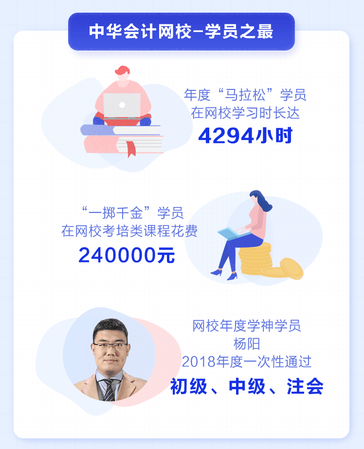 来了,临近年根儿了,2018年正保会计网校学员大数据新鲜出炉,无论是95后的小鲜肉还是55岁的老腊肉,都已意识到学习的重要性。其中,有学员在会计考培类课程中花费了240000元,可谓是一掷千金。是的,贫穷限制了小编的想像力,数了两遍零。正保会计网校最受学员欢迎的班次TOP5为:高效取证班、超值精讲班、VIP签约特训班、私教直播班、面授班。我们的资产评估师辅导班次就在其中哦——高效取证班排在第一名的哦!