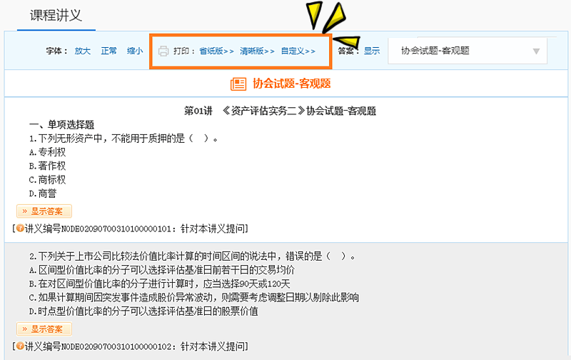 距2019年资产评估师考试还有3周的时间,自中国资产评估协会发布机考练习系统后,很多考生在咨询该版本练习题是否提供参考答案。还有些考生表示“想将机考练习系统中的题目打印出来进行练习”。