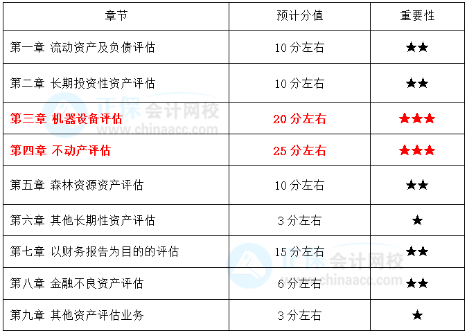 网校老师根据《资产评估实务一》各章节的重要性划分了星级考点!