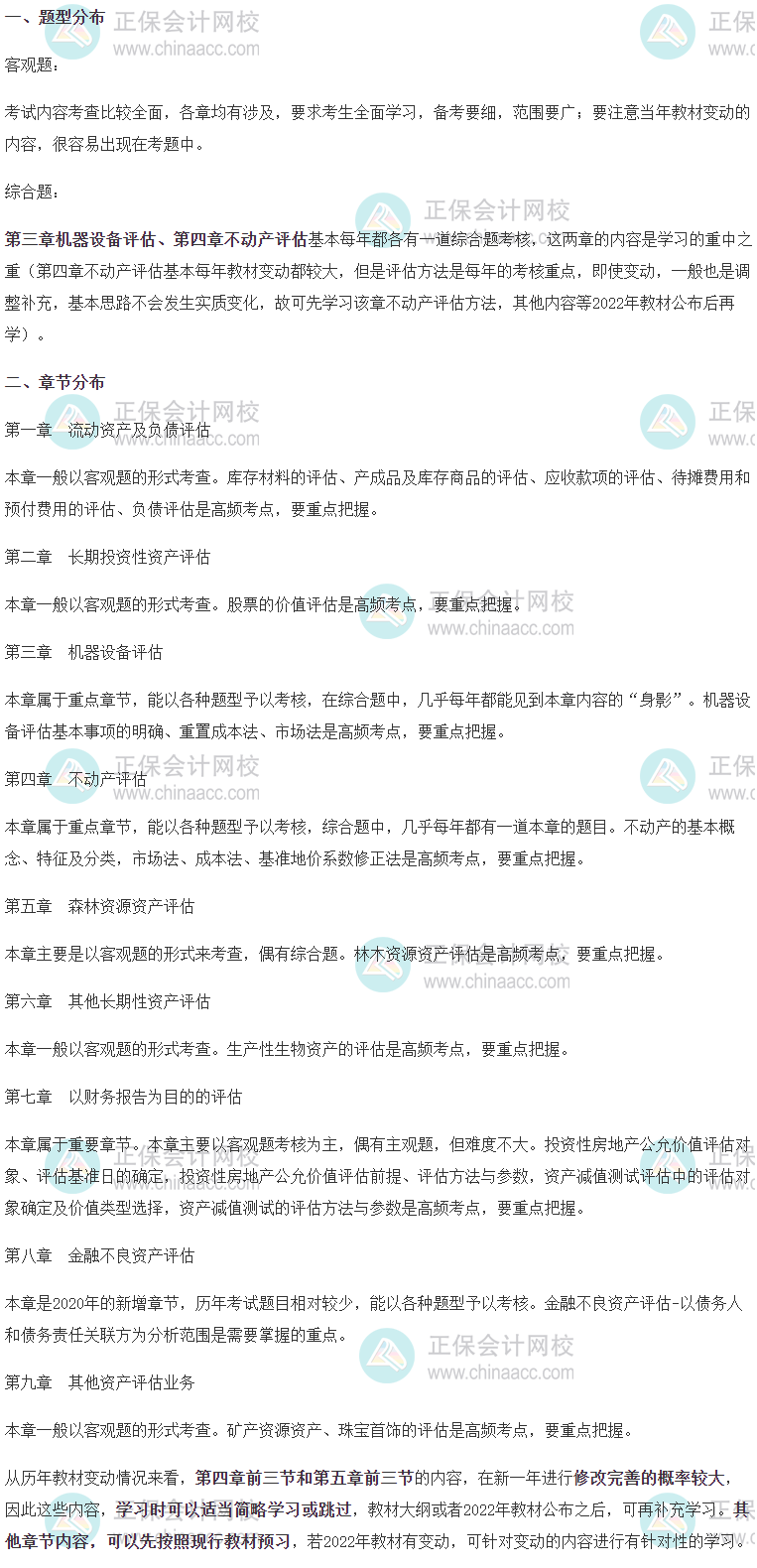 2022年资产评估师《资产评估实务一》教材和考试大纲暂未公布,打算提前预习的考生们,可以重点预习章节有哪些呢? 来看看教学团队老师的分析说明!