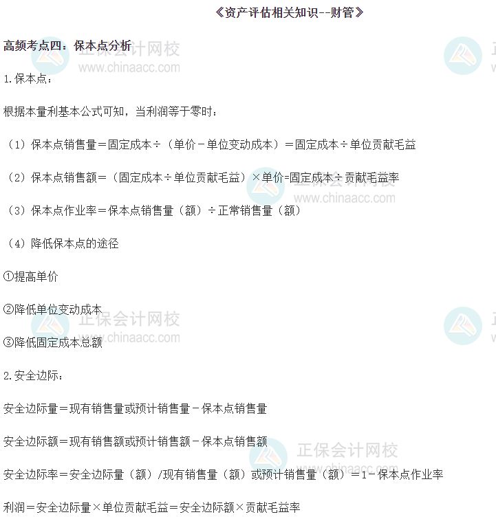2022《资产评估相关知识》高频考点:保本点分析