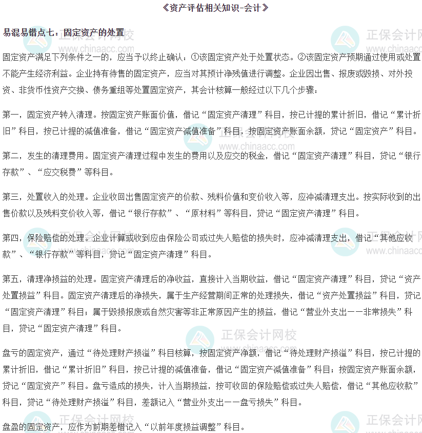 2022《资产评估相关知识》易错易混知识点:固定资产的处置