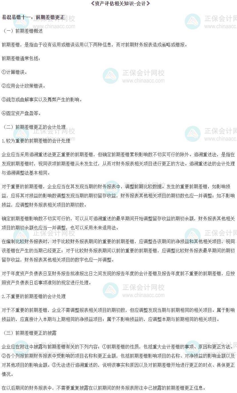 2022《资产评估相关知识》易错易混知识点:前期差错更正