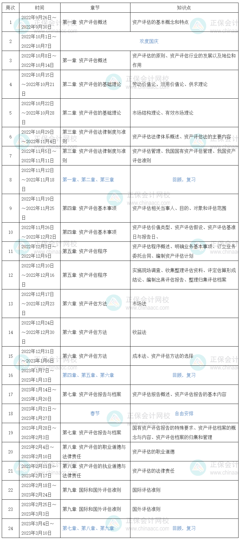 为帮助大家尽快适应《资产评估基础》科目的学习,正保会计网校针对该科目制定了2023年预习计划表,以方便同学们对该科目的预习进度进行整体把握,希望这份计划表对大家顺利通过2023年的考试有所帮助。