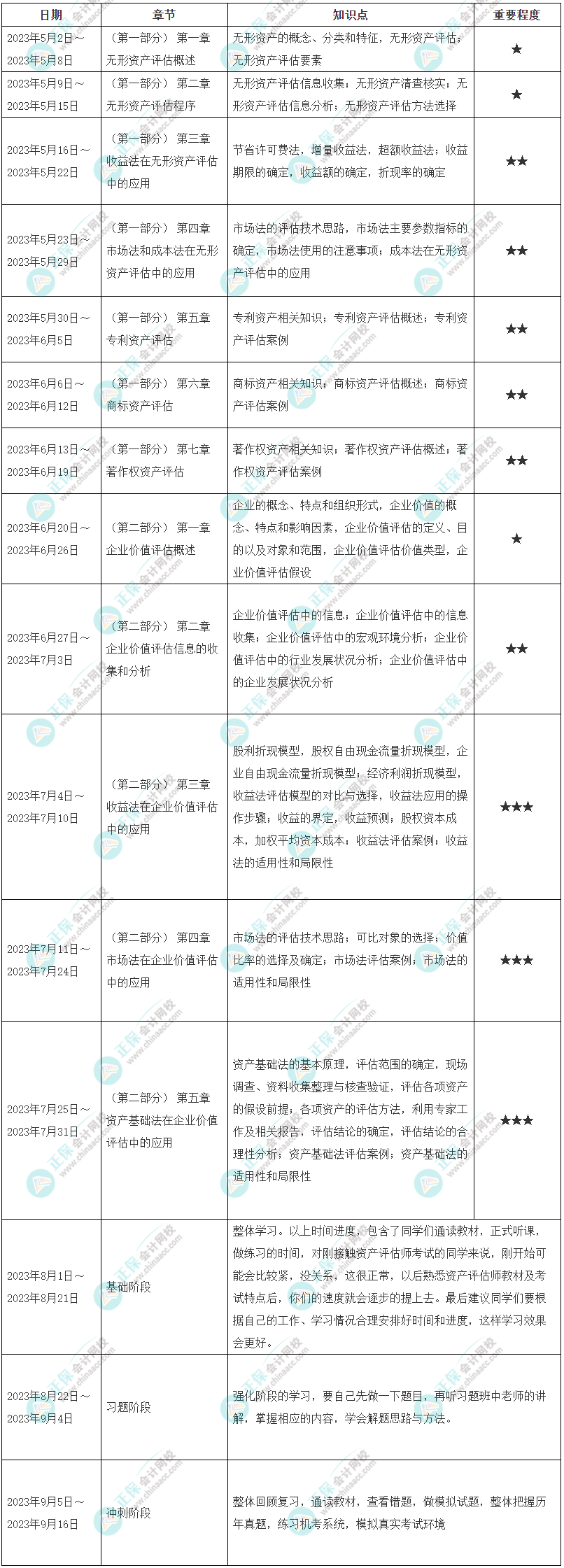 备注:整体进度说明:本计划表从2023年5月2日开始执行,计划于2023年9月16日结束;学员可根据本表的提示,结合自己的时间安排及学习情况进行细化,并按课程要求完成听课、做题的学习任务,基本可满足考试需要。