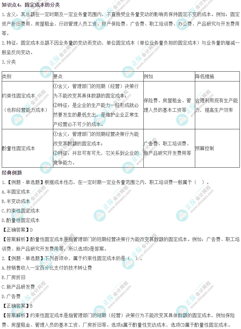 2023《资产评估相关知识》易错易混知识点:固定成本的分类