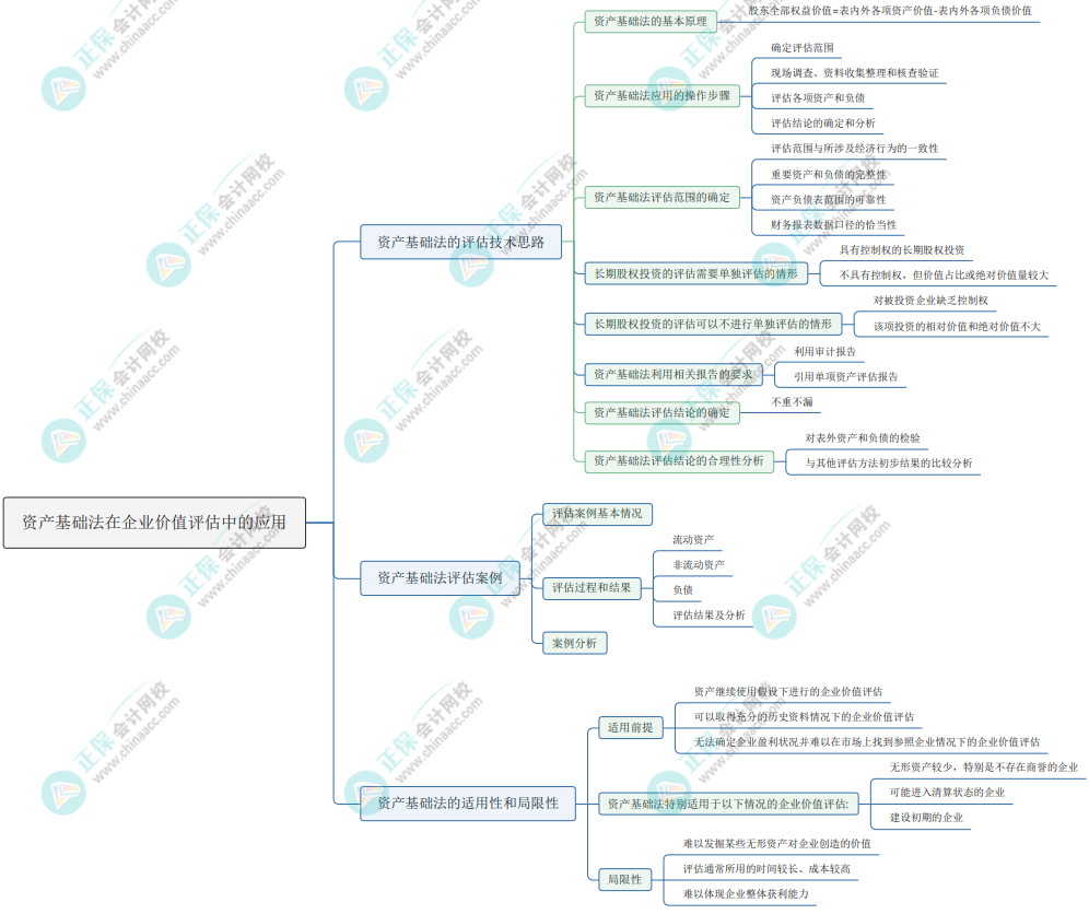 备考2023年资产评估师需要借助辅助工具,思维导图是我们常用的,以下是2023年《资产评估实务二》学习思维导图:资产基础法在企业价值评估中的应用。