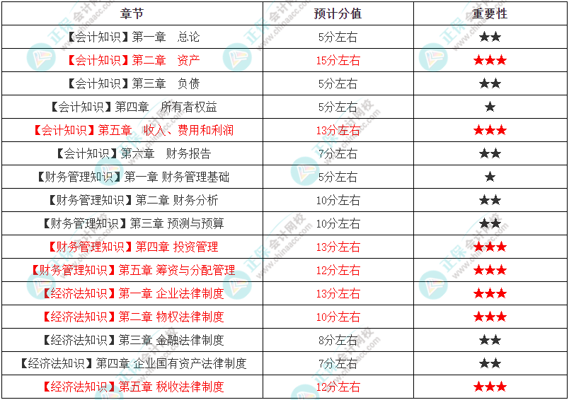 会计部分:重点章节(三星级)在各个题型均有可能出现,同时可能单独出题,也可能和其他章节结合出题,在学习过程中需要注意对知识的综合运用;其他章节(一星级、二星级)可能涉及基础知识点的考核,需要在学习的过程中打好基础,虽然考试可能会涉及新的出题角度,但是万变不离其宗,备考时要牢固基础概念,加强理解,灵活运用。