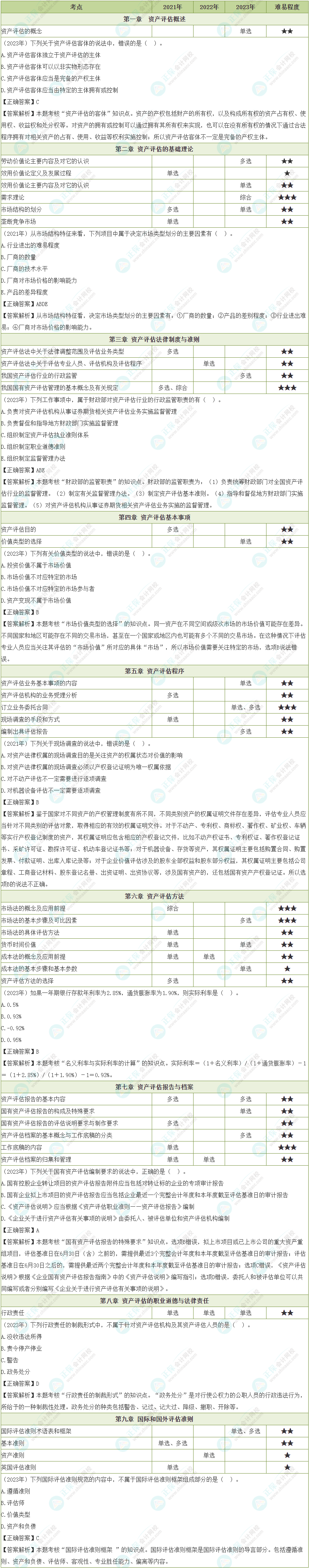 2024年资产评估师考试将于9月15日-16日举行,距离考试越来越近,正保会计网校教研团队特整理了《资产评估基础》各章节历年考查题型总结,建议各位考生考前必看,提前熟悉出题套路!