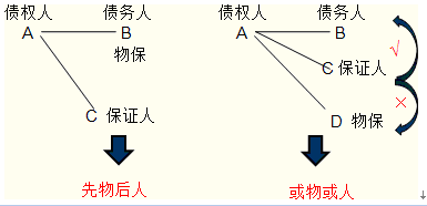债权人先就债务人的物的担保求偿,保证在物的担保不足清偿时承担补充清偿责任。