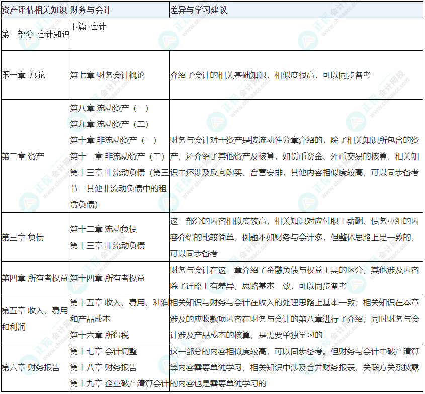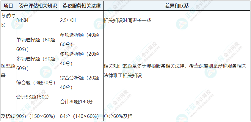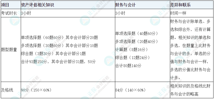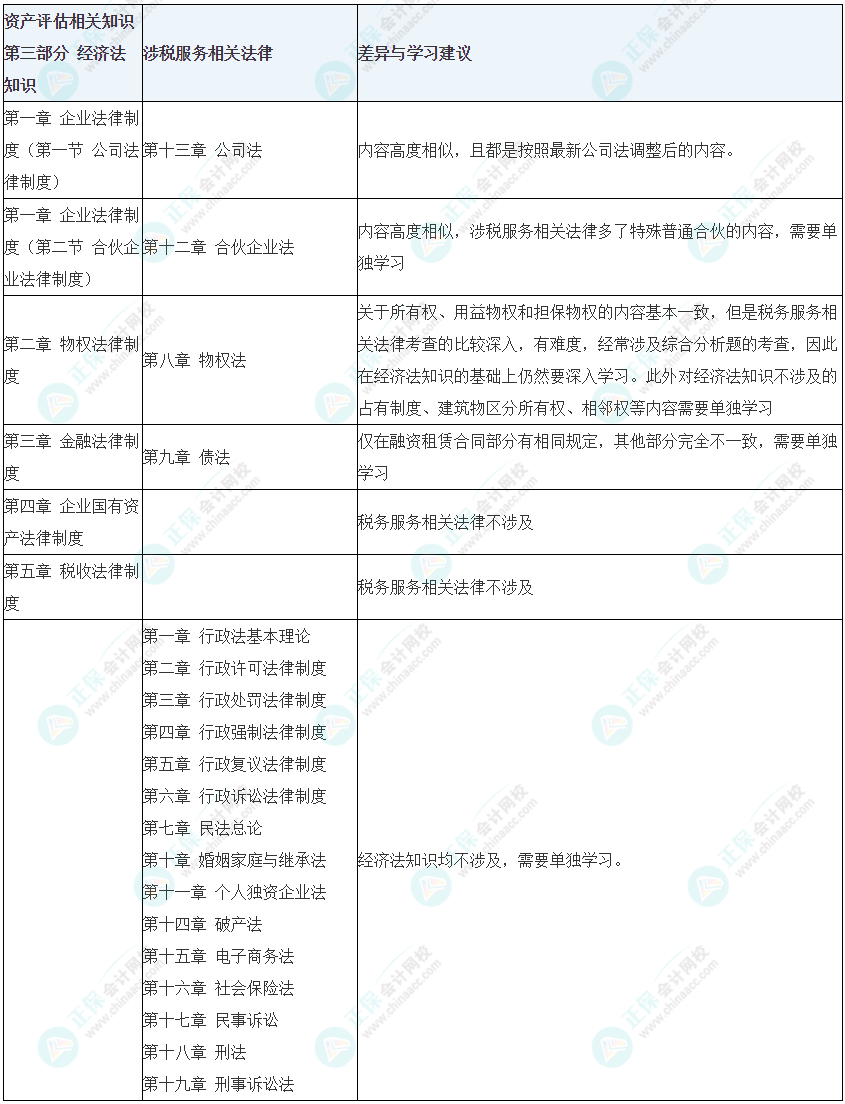由于资产评估师大部分科目与税务师关联不大,仅有《资产评估相关知识》与《财务与会计》和《涉税服务相关法律》两科有关联,因此仅对这几个科目做对比与分析。