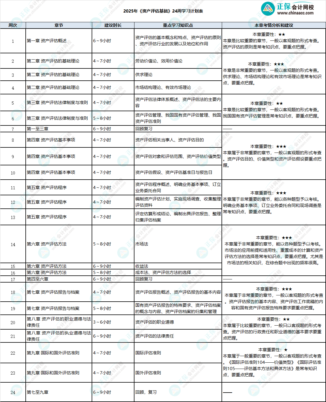 为帮助大家尽快适应《资产评估基础》科目的学习,正保会计网校针对该科目制定了2025年预习计划表,以方便同学们对该科目的预习进度进行整体把握,希望这份计划表对大家顺利通过2025年的考试有所帮助。