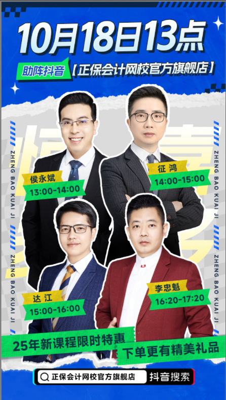 10月18日13点起“正保会计网校官方旗舰店”抖音号,老师助阵直播!
