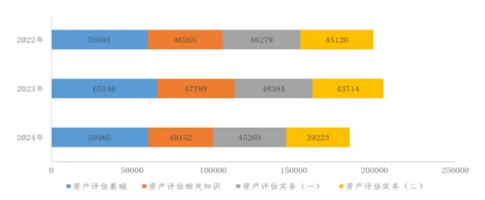 2024年资产评估师考试共有77488人报名,同比减少8.25%。合计报考184609科次,同比减少10.14%。