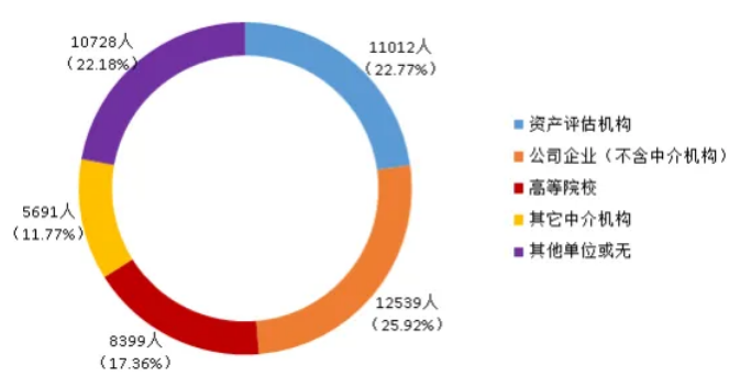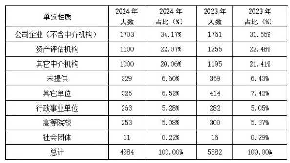 从参考考生单位性质看,资产评估机构和公司企业(不含中介机构)参考人数相对较多。