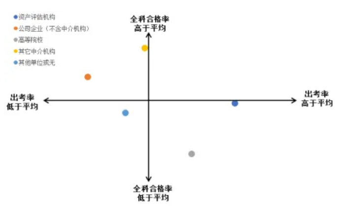 从单位性质看,来自现代服务业考生的全科合格率相对较高,表明资产评估师考试内容与考生工作经验契合度正相关。