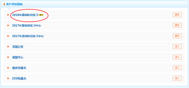 第三步:点击“2018年基础阶段练习”,进入题库页面,便可以看到开通的试题啦。