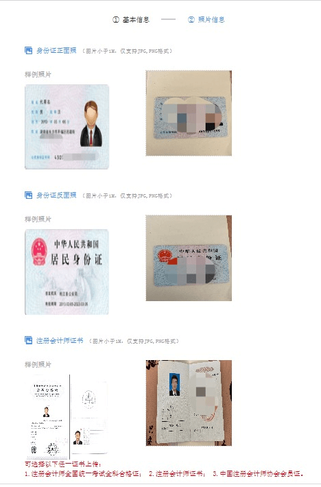 上传身份证正、反面图片及注会证书;证书可以是上述3种任意一个,需与申请表中的时间一致。