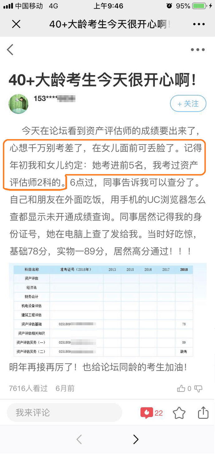 女儿考进前5名,她考过资产评估师2科。