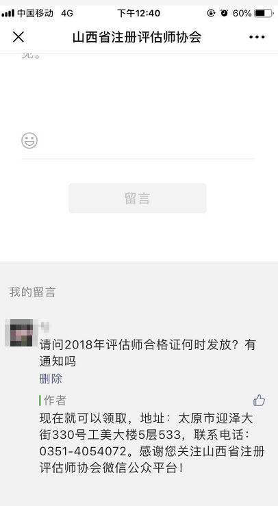 经小编微信及电话咨询得知,山西省2018年资产评估师合格证已经开始发放,请山西太原市、大同市、阳泉市、长治市、晋城市、朔州市、晋中市、运城市、忻州市、临汾市、吕梁市参加资产评估师考试并全科成绩合格的考生尽快领取。