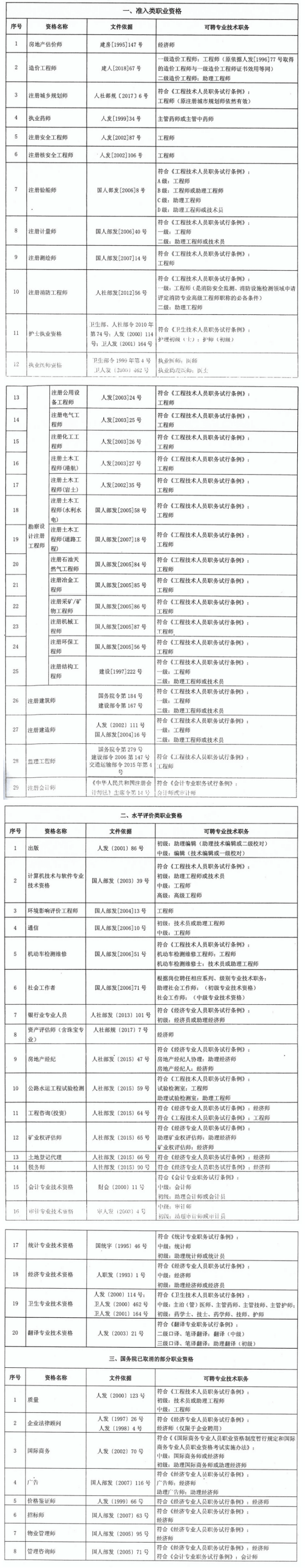 (一)专业技术人员取得上述职业资格,可对应相应系列和层级职称。按有关规定需经注册登记的职业资格,注册后方可聘任专业技术职务。符合晋升职称条件的,可持证书直接申报,其任职时间从聘任时间起算。