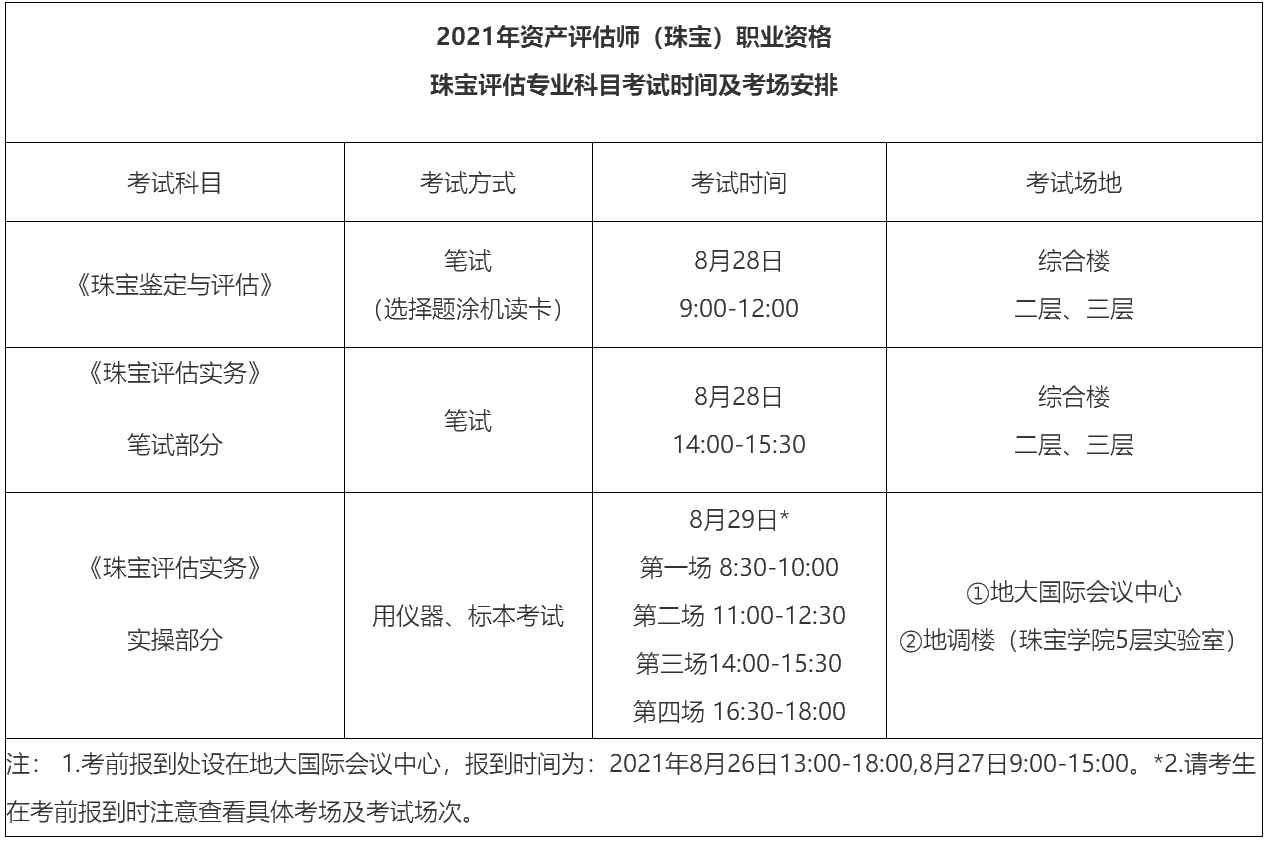 2021年资产评估师(珠宝)职业资格珠宝评估专业考试时间为2021年8月28日至29日,考试地点设在北京。