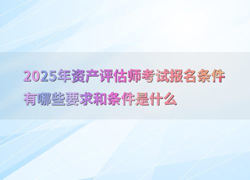 报名时间:2025年资产评估师考试的报名时间为3月24日9:00至5月9日24:00,补报名时间为7月14日至7月23日。