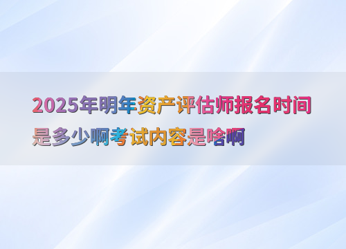 2025年资产评估师职业资格全国统一考试的报名时间为3月24日9:00至5月9日24:00,补报名时间为7月14日9:00至7月23日24:00。