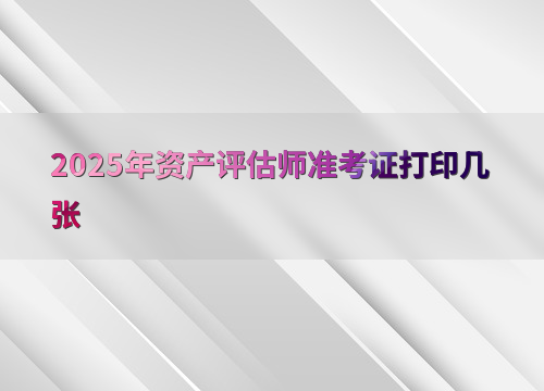 2025年资产评估师考试准考证打印时间为9月15日9:00至9月21日14:00,建议考生多打印几份留存,避免考前丢失。