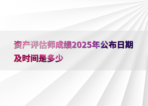 根据往年规律,2025年资产评估师考试成绩预计在10月下旬公布,具体时间请以中国资产评估协会官网通知为准。