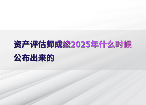 根据往年规律,2025年资产评估师考试成绩预计在10月下旬公布,具体时间需以中国资产评估协会官方通知为准。