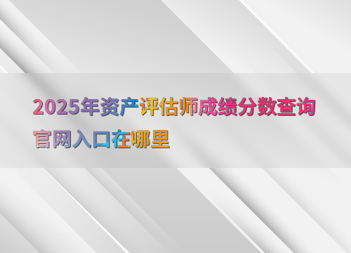 2025年资产评估师考试成绩预计在10月下旬公布,具体时间请关注中国资产评估协会官网通知。