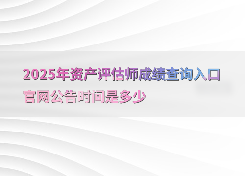 根据往年规律,2025年资产评估师考试成绩预计在10月下旬公布,具体日期需以中国资产评估协会官方通知为准。