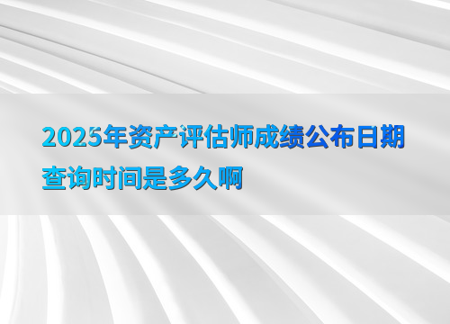 2025年资产评估师考试成绩查询时间尚未公布,但根据往年规律,通常在考后约一个月发布。