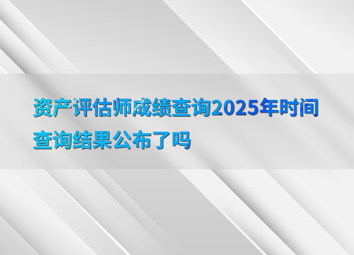 截至目前,2025年资产评估师考试成绩查询时间尚未正式公布。