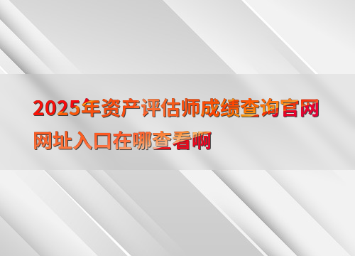 2025年资产评估师考试成绩预计在10月下旬公布,考生可登录中国资产评估协会官网(www.cas.org.cn)或考试服务平台(c.exam-sp.com/asset/index)进行查询。