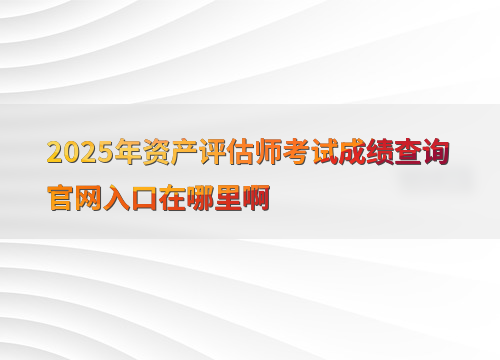 2025年资产评估师考试成绩预计在10月下旬公布,考生可登录中国资产评估协会官网(www.cas.org.cn)或“资产评估师职业资格全国统一考试服务平台”查询成绩。