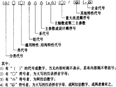 【答案解析】 M为类代号,代表磨床;B是通用特性代号,代表半自动;E是结构特性代号;1是组代号,表示外圆磨床,4是系代号,32是主参数,表示最大磨削直径为320mm。