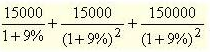 某被评估企业拥有债券,面值150000元,期限为3年,年息为10%,按年付息,到期还本。评估时债券购入已满一年。评估时,国库券年利率为7.5%,考虑到债券为非上市债券,不能随时变现,经测定企业财务状况等因素,按1.5%确定为风险报酬率。评估该债券的价值。