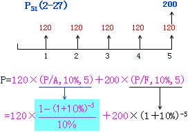 评估值=120×(P/A,i,n)+200×(P/F,i,n)