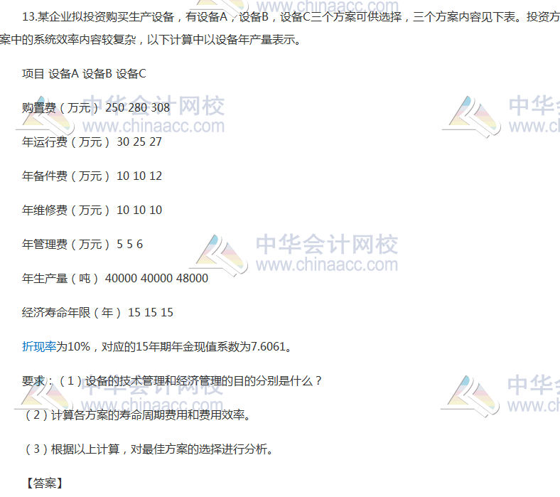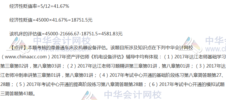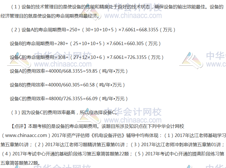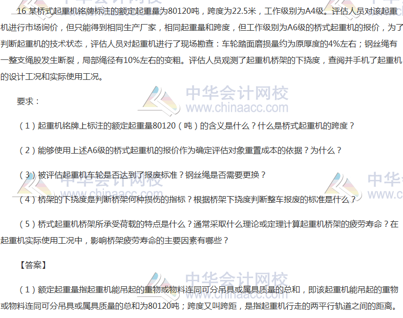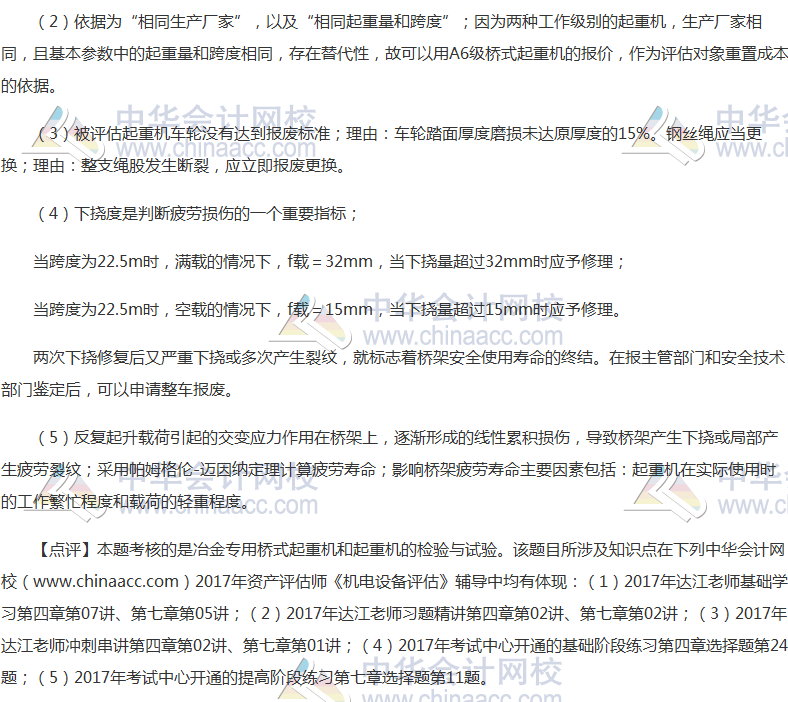 2017年资产评估师考试新旧制度并行,《机电设备评估》科目考试已经结束。大家是不是在热切地盼望看到2017年资产评估师考试真题及参考答案呢?正保会计网校根据论坛学员反馈整理了《机电设备评估》2017年资产评估师考试真题及参考答案(考生回忆版),供考生参考!欢迎广大考生朋友们登录网校论坛一起回忆资产评估师真题对答案!以下是收集到的2017年资产评估师《机电设备评估》综合题及参考答案: