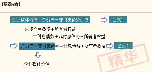 请问老师,为什么企业整体价值= 总资产 - 非付息债务