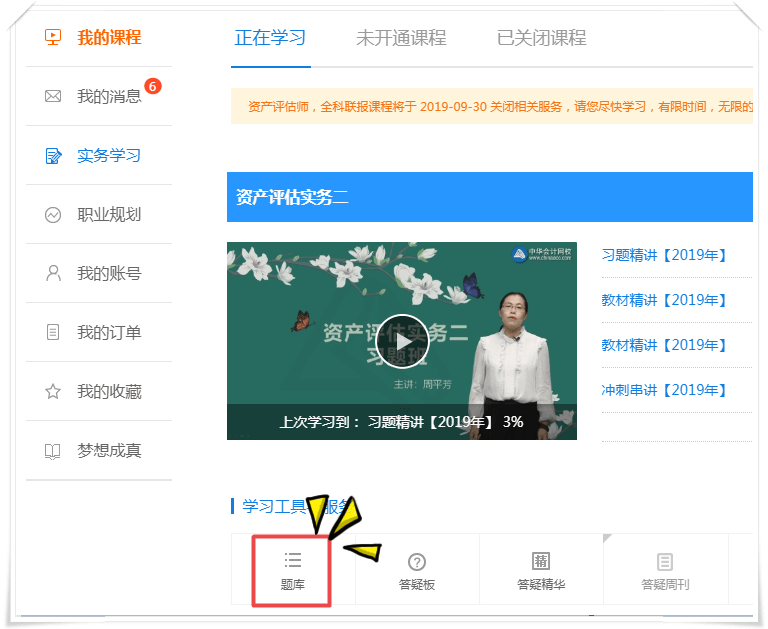 2019年资产评估师高效取证班付费学员可以登录后到题库里面查看、练习!具体流程查看下方图片所示。