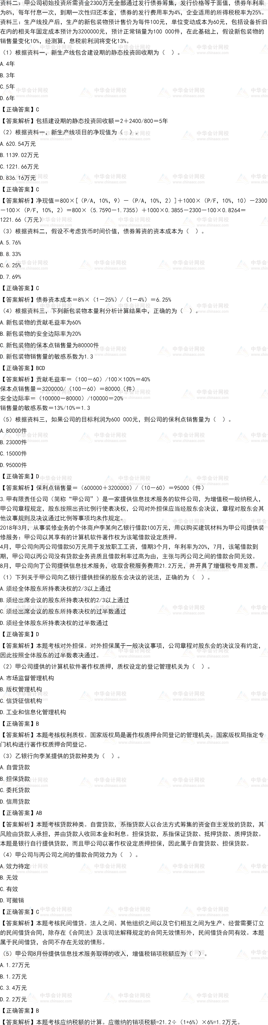 本试卷内容根据正保会计网校论坛考生讨论内容,由网校教学专家整理。